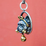 We have bulldog ring. The design of this pendant will be more cute compared to the ring. The bulldog wears antler, hangs a bell, and holds a bone in the mouth. The mouth can be opened to remove the bone. It is an adorable pendant for Christmas. The whole pendant is made of sterling silver, bone, antler and bell are all made of gold-plated brass.